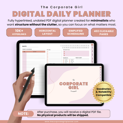Apple Users: ⭕ Goodnotes 5 or 6 ⭕ Noteful app on the iPad Also, while you can type in the planner, to ensure all the functionalities work on the app, it is best paired with with an Apple pencil. For our Android users feel free to use the Penly app and the Samsung S-pen. Please note the following: • There will be color variations in screens and monitors. This may cause the planner to appear slightly different in color.